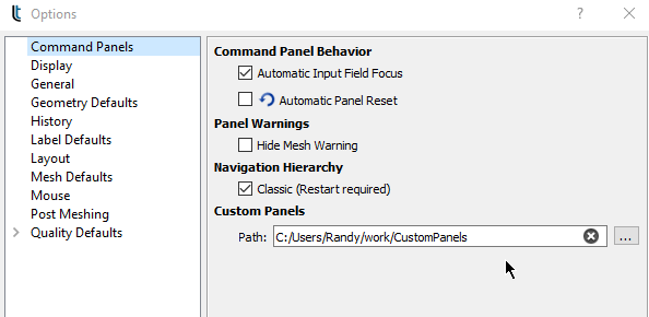 Within the CustomPanels directory create a subdirectory for a new panel. The name is not important