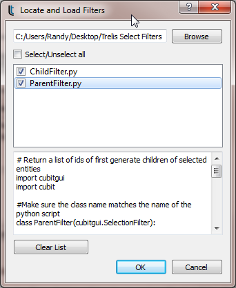 Selecting multiple entities in a complex model can be challenging. The Extended Selection Dialog was created to help users create detailed and specific selection filters using Python and then reuse or share those filters with others. Refer to the documentation for details.