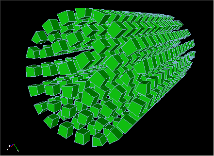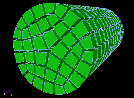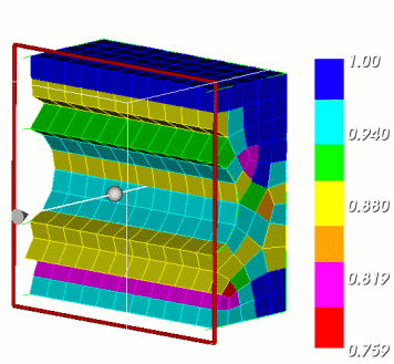 The shrink graphics attribute allows you to view the elements shrunken about their centroid. This is useful for viewing 3D meshes, permitting viewing of interior elements. It may also be useful for visually inspecting the mesh for missing elements. To use the shrink option use: