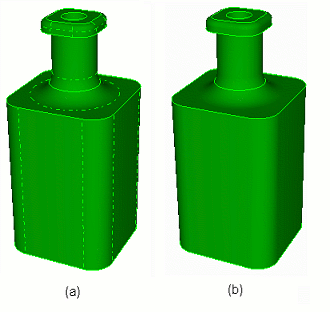 Figure 67: A part shown with (a) composite surfaces displayed (b) composite surfaces not displayed