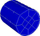 Figure 66: A meshed cylinder shown with graphics facets off (left) and graphics facets on (right); note how geometry facets on the curved surface obscure mesh edges when facets are off.