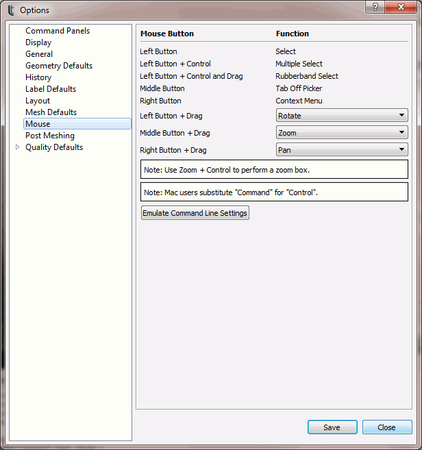 These settings are applicable only to the UNIX command line version of Cubit. For a description of the Graphical User Interface Mouse Operations see GUI View Navigation.