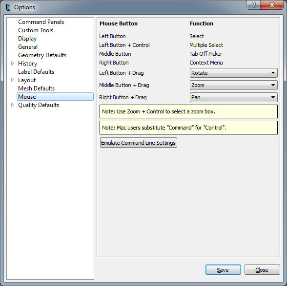 Figure 1. Default Mouse Function Mappings for the Command Line