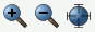 zoom screen will move the camera <factor> times closer to its focal point. The result is that objects on the focal plane will appear <factor> times larger. Zooming on a specific portion of the screen is accomplished by specifying the zoom area in screen coordinates; for example, zoom 0 .25 .25 will zoom in on the bottom left quarter of the screen. Zooming on a particular entity in the model is accomplished by specifying the entity type and ID after entering zoom. The image will be adjusted to fit bounding box of the specified entity into the graphics window, and the specified entity will be highlighted. You can specify a final direction to look at when zooming by using the direction option. To center the view on all visible entities, use the zoom reset command. The GUI tool bar buttons for controlling zoom in, zoom out, and zoom reset are as follows: