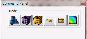 The Command Panel is arranged first by mode on the top row of buttons. Modes are arranged by task. All of the geometry related tasks, for instance, can be found under the Geometry mode. When a mode is selected, a second row of buttons becomes available, then a third. The second row of buttons shown depends on the selected mode.