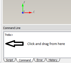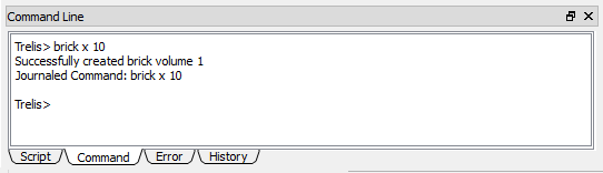 Command Line Workspace - The command line workspace contains both the Cubit command and error windows. The command window is used to enter Cubit commands and view the output. The error window is used to view Cubit errors.