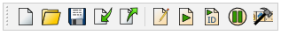 Provides Cubit (*.cub) file operations. This toolbar also includes Journal File operations and tool bar customization operations. From left to right, the buttons are: