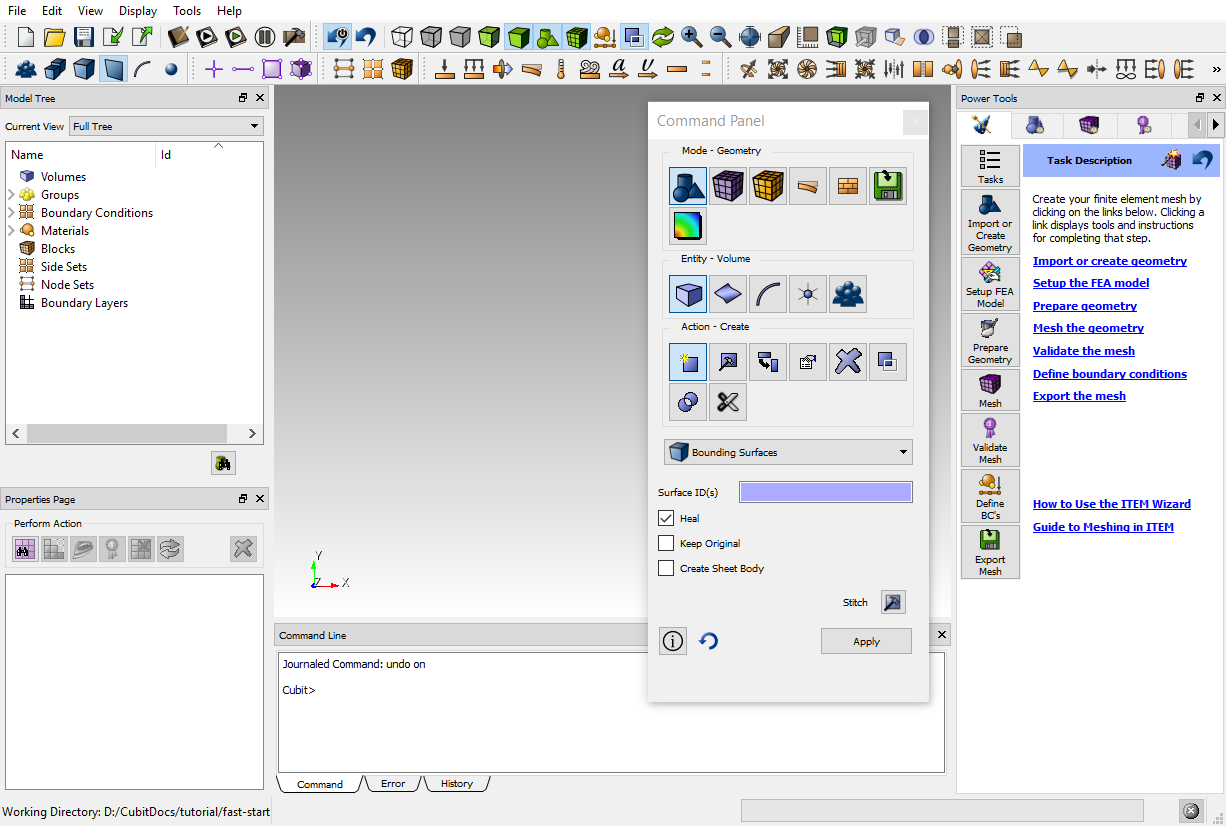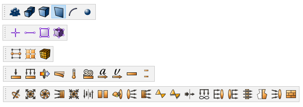 The Cubit toolbars provide an effective way for accessing frequently used commands. Below is a brief description of each of the available toolbars. To view a description of the function of each tool, hold the mouse over the tool in the Cubit Application to display tool tips.