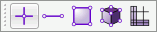 Controls the display mode, checkpoint undo, zoom, perspective clipping plane, and curve valence display options in the Graphics Window. From left to right, the buttons are: