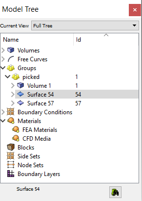 Model Tree - Tree view of the models components, including geometry, materials, boundary conditions, and so forth.