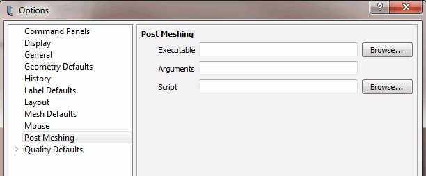 Hide Mesh Warning – Is a user attempts to mesh an entity that already contains a mesh, a warning will be shown to the user indicating the situation. If this option is checked, the warning will not be shown.