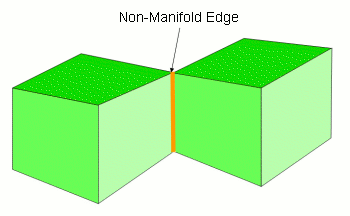 The model edge check will find edges with adjoining quadrilaterals or triangles whose angles between the surface normals exceed a specified value. The default angle is 40 degrees.
