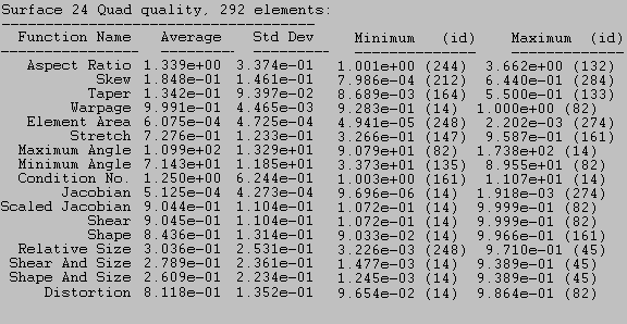 Quality Describe {Hex | Hexahedral | Tet | Tetrahedral | Face | Quad | Quadrilateral | Tri | Triangular}