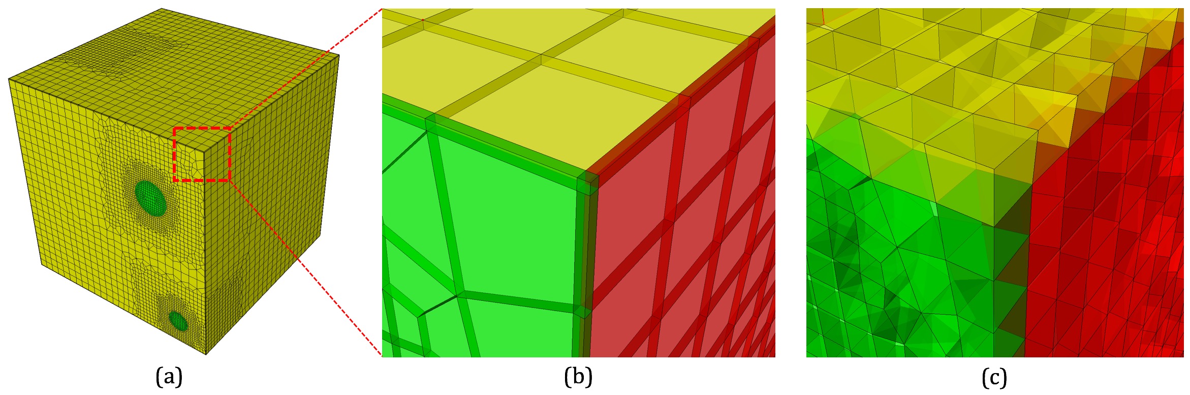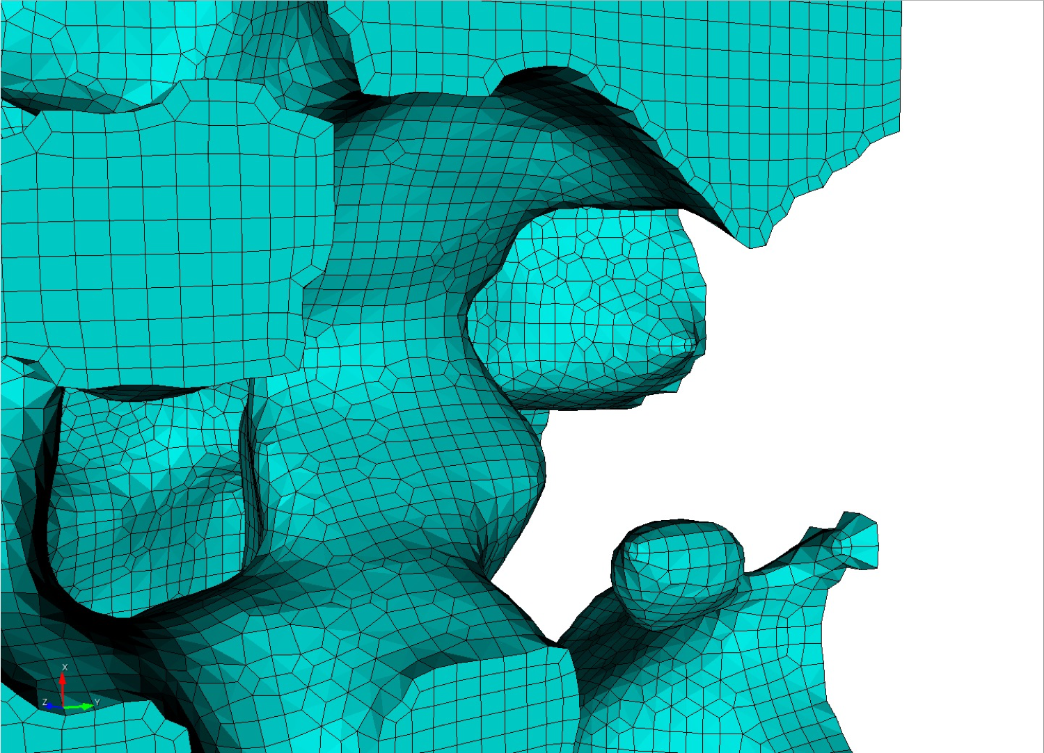 Tet meshing can be used to generate hexahedral meshes using the Thex command. Each of the tetrahedron can be converted into 4 hexes, producing a fully conformal hexahedral mesh, albeit of poorer quality. These meshes can often be used in codes that are less sensitive to mesh quality and mesh directionality. The Thex command requires that all tets in the model be converted to hexahedra with the same command.