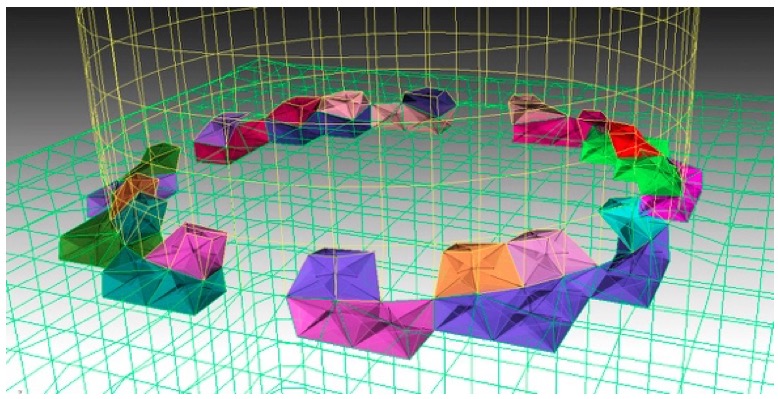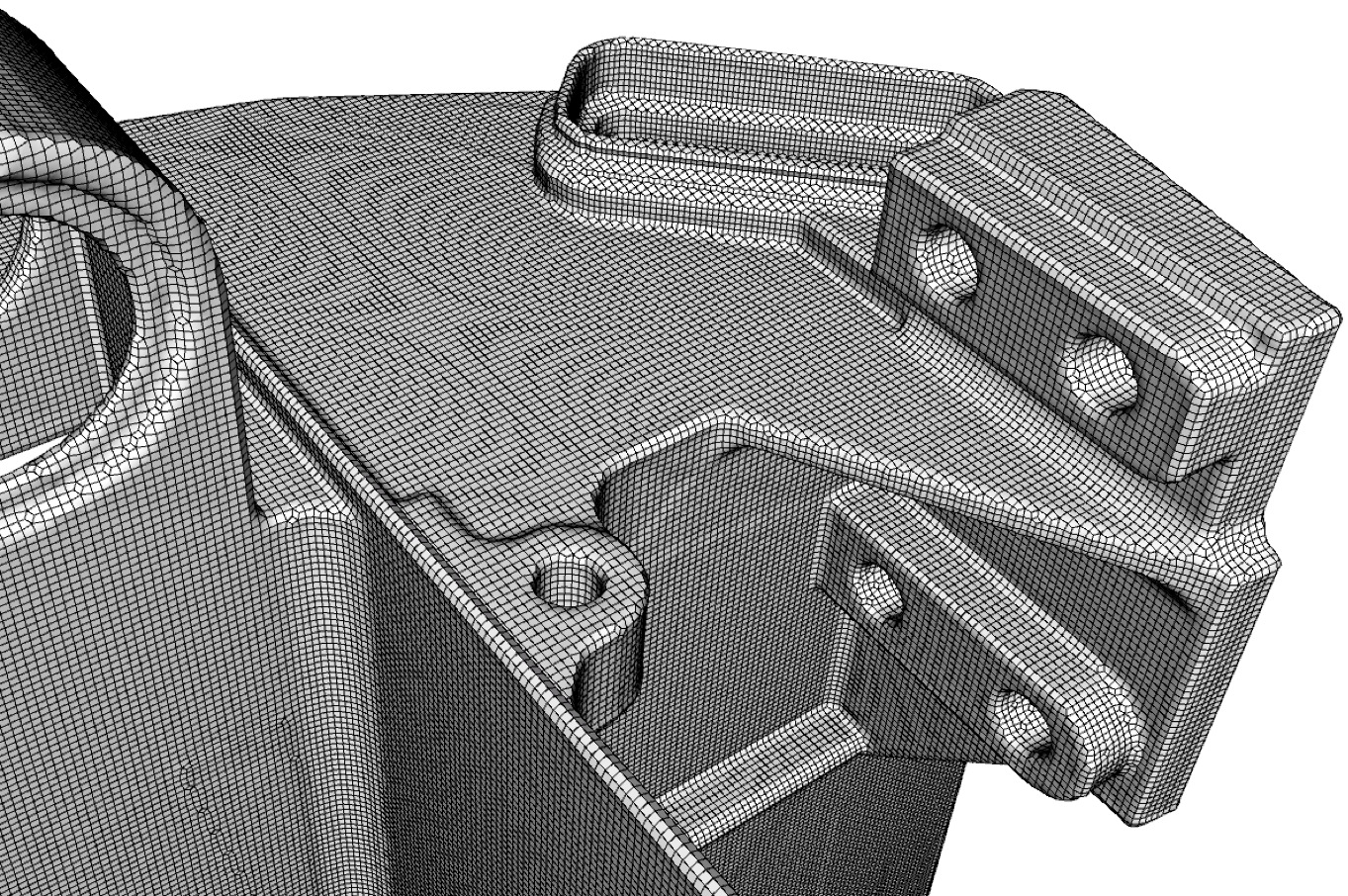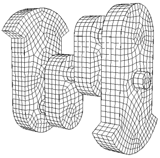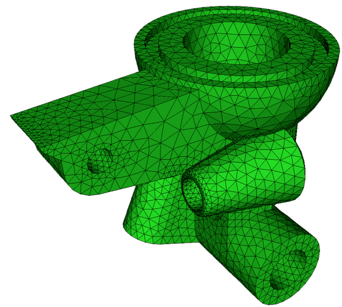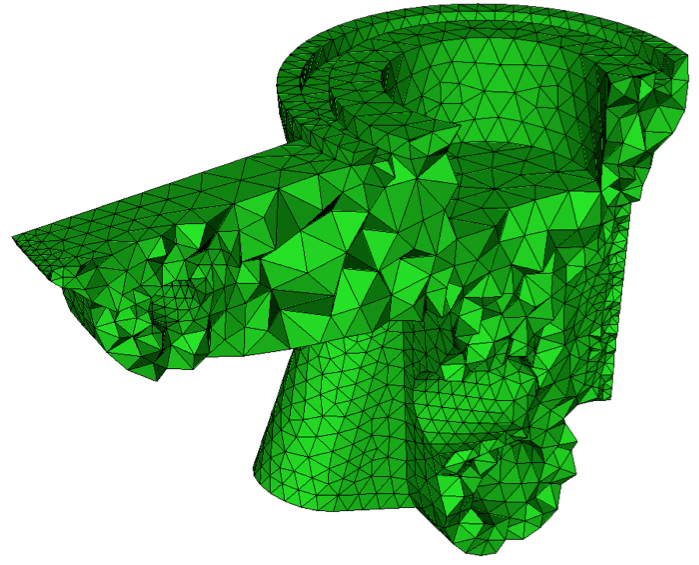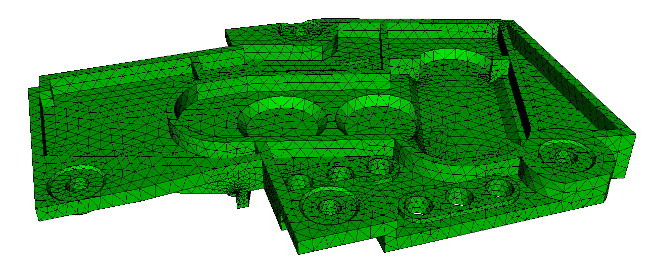Figure 352: Triangle meshes generated with the TriMesh scheme using default settings on the surfaces of a CAD model.