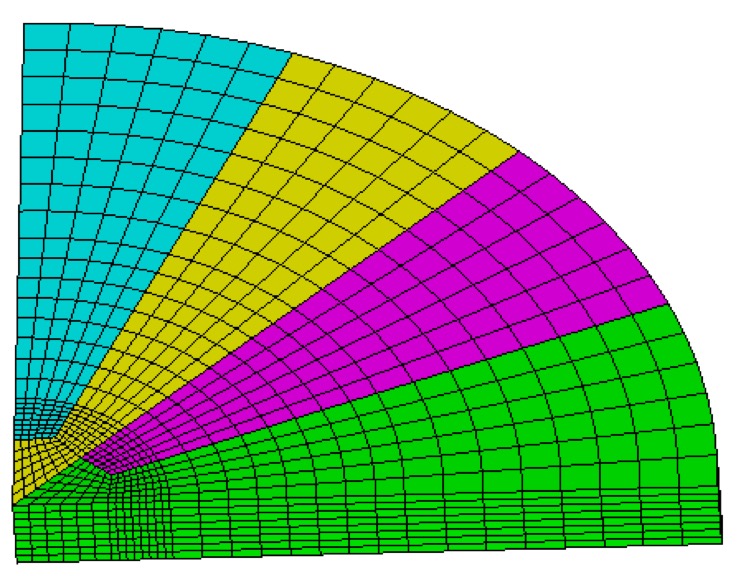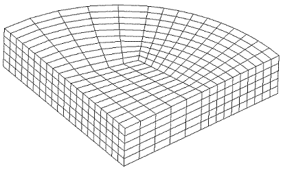 Figure 351: Sphere octant hex meshed with scheme Tetprimitive, surfaces meshed using scheme Triprimitive