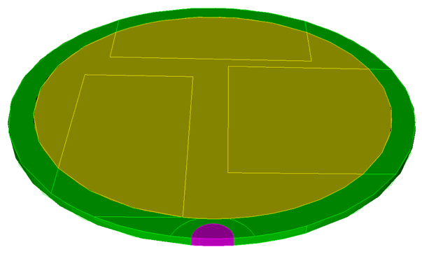 Note that the geometry approximation angle is also effective in controlling the element size on the interior of surfaces as illustrated in figure 3. This is most useful when used in conjunction with the TetMesh Scheme where smaller tets will be placed in regions of higher curvature.