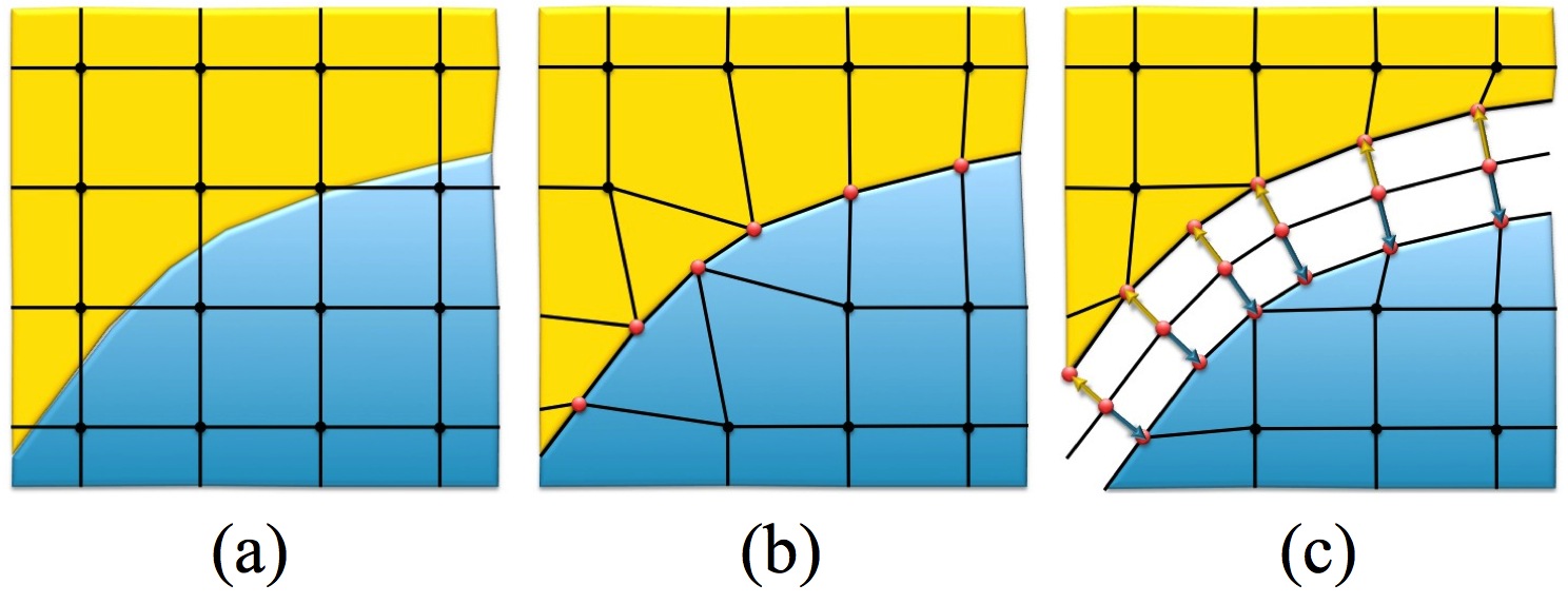 Summary: Places triangle elements at some vertices, and map meshes the remaining surface.