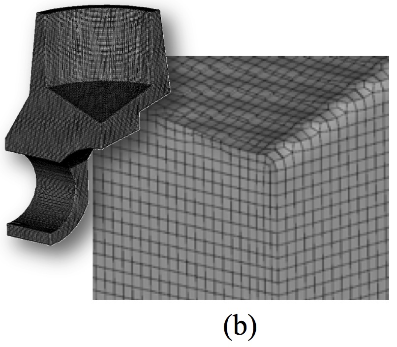 Figure 357: a. An example of a cut-away mesh with a volume gradation, where the small size on the interior void propagates to the exterior surfaces