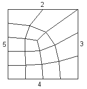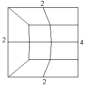 Discussion: The TQuad command splits each triangular surface element in four quadrilateral elements, as shown in Figure 232. This is done by splitting each edge at its midpoint, and then forming connections to the center of the triangle. The result is the same as using the THex algorithm, but only applies to surfaces. In general it is better to use a mapped or paved mesh to generate quadrilateral surface meshes. However, the TQuad scheme may be useful for converting facet-based triangular meshes to quadrilateral meshes when remeshing is not possible.