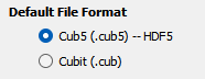 The set file overwrite command can be toggled on and off to allow overwriting when using the save as command. The command is defaulted to not allow overwriting.The "journal’ keyword will cause the existing journal file to be embedded in the .Cubit file. From the GUI, this option is on by default.The default file type (.Cubit (HDF5) versus .cub (legacy Cubit format) is controlled from the Geometry Defaults options panel. The default type is Cubit. The Save and Save As commands are sensitive to this setting and will write .Cubit or .cub files based on the setting. The setting is persistent between sessions.